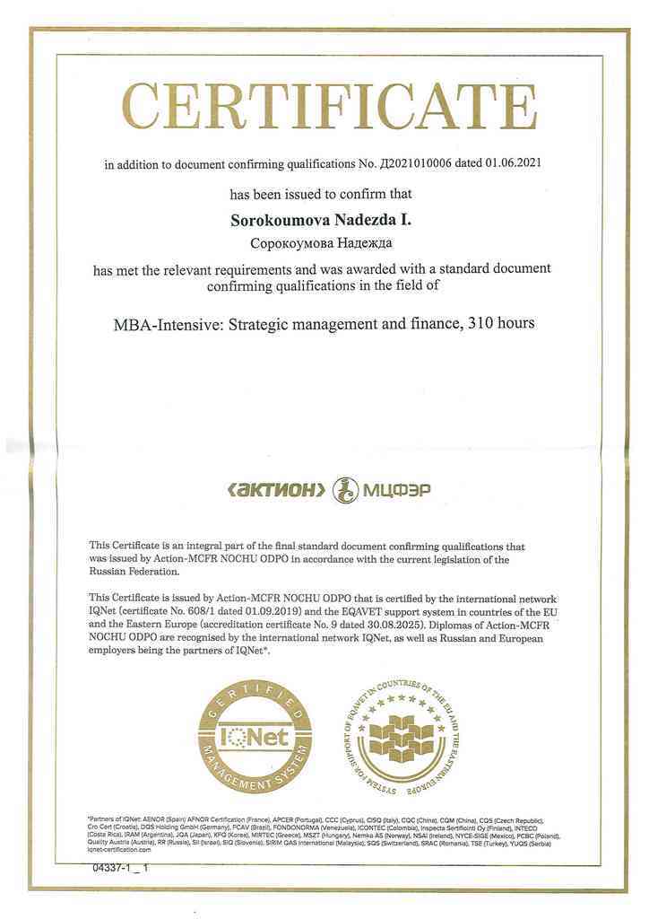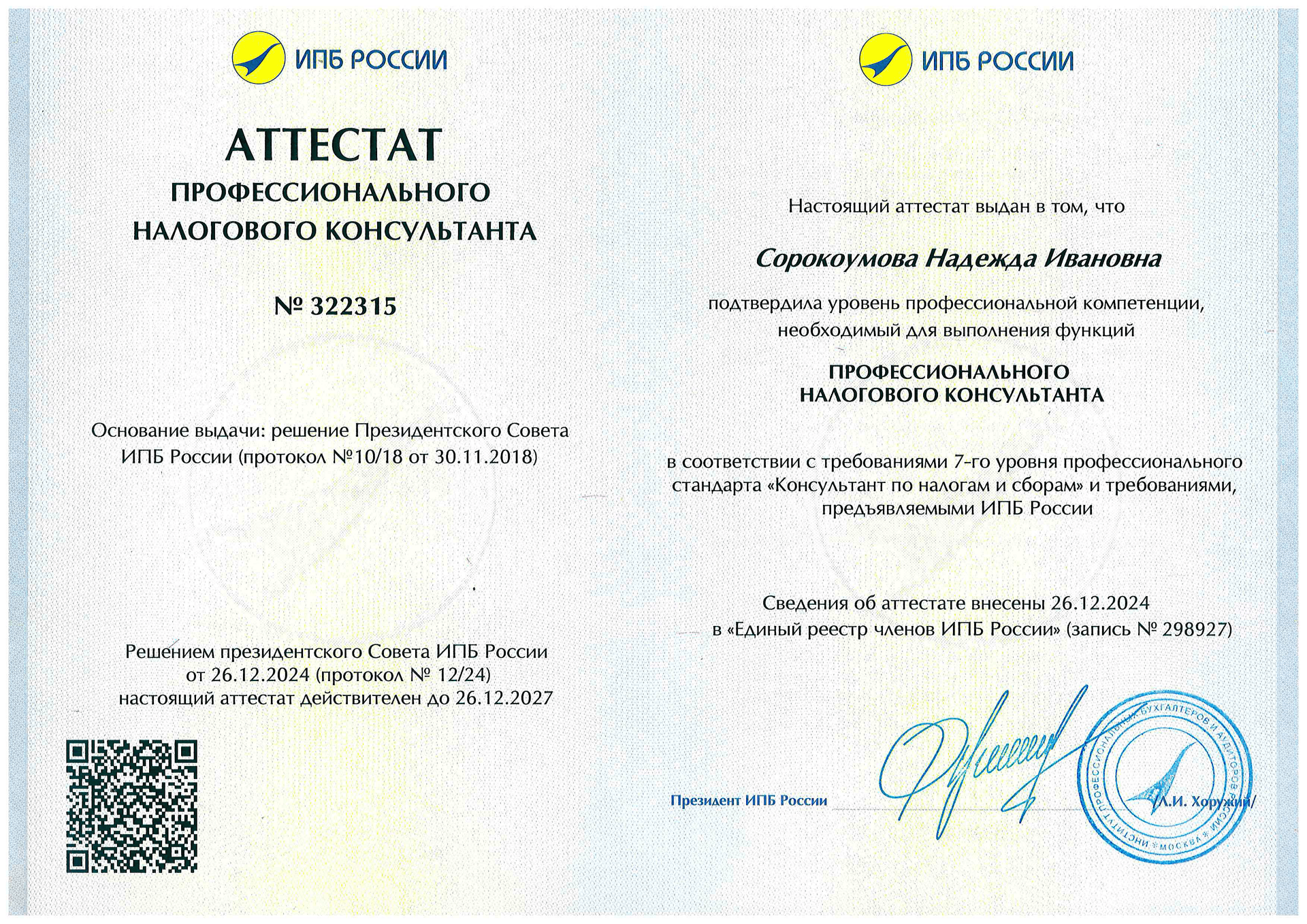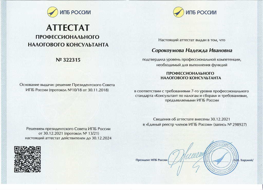 Действительный член ИПБ России (Аттестат Профессионального финансового директора, Профессионального налогового консультанта).